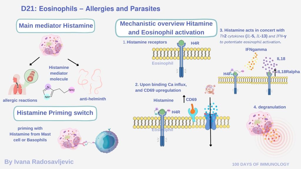 #100DaysOfImmunology #Eosinophils #Histamine #H4R #Allergy #Parasites #GermanResearchers #ImmuneMechanisms #IL18 #AtopicDermatitis #Inflammation