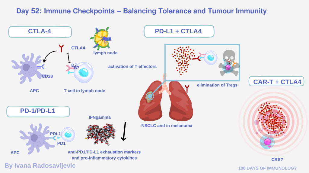 #100DaysOfImmunology #ImmuneCheckpoints #CancerImmunology #ImmunoOncology #PD1 #CTLA4 #CombinationTherapy #CAR_T #TumorMicroenvironment #irAEs
